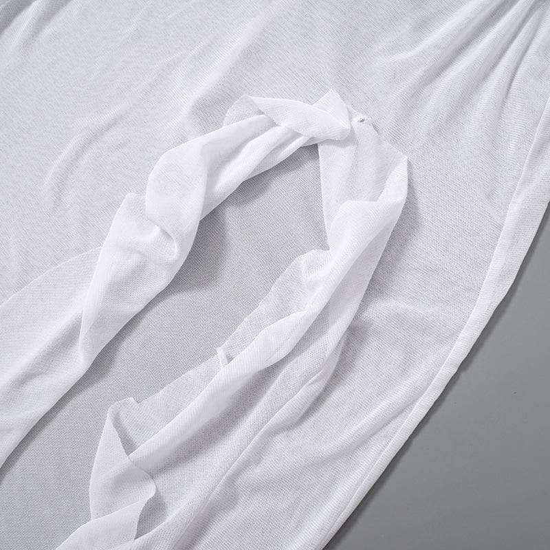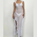 Sheer Mesh See Through Backless Ruffle Slit Cap Sleeve Maxi Dress