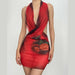 Sheer Mesh See Through Cross Front Low Cut Halter Backless Mini Dress