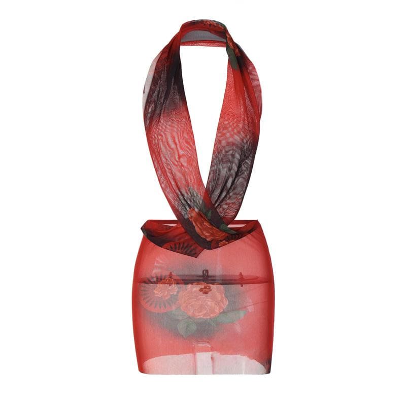 • Sheer Mesh See Through Cross Front Low Cut Halter Backless Mini Dress
