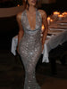 Shiny Sequins Sexy Women Long Dress Stunning Halter Lace Up Swinging Neck Backless Sheath Vestidos Female Club Party Robe