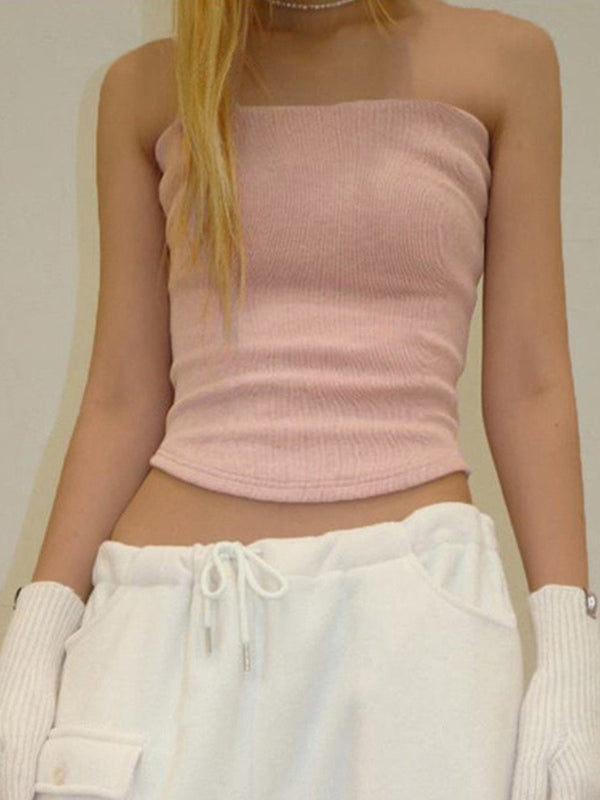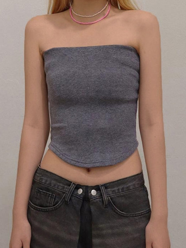One-shoulder neckline: The tube top is designed with an off-shoulder neckline. which is a simple and elegant style that highlights the neck and shoulders.