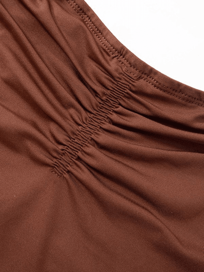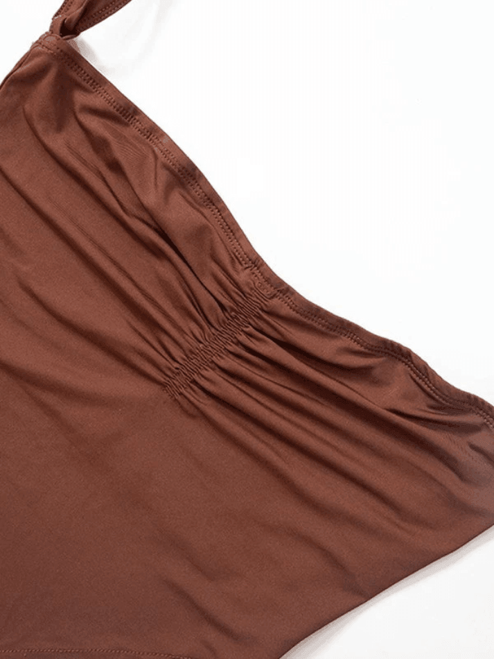 Description: Embrace your fashion-forward side with our stylish strappy bandeau top. The long strappy details on the sleeves add a touch of edginess. while the ruched chest and pointed hemline design create a flattering silhouette. Perfect for making a statement in any street. Y2K. sexy. punk. sweet. hip pop. vintage. or grunge-inspired outfit.