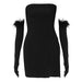 This saucy bandeau mini dress is all about sultry vibes! Crafted with soft qmilk and polyester. embellished with feathered long gloves accentuated with full-finger design. featuring a bandeau neckline. a slip-on styling embodied with an extra-sexy high-thigh slit a the front. a body-conscious silhouette framed by a flat hem. ending up in a super short length. Find more trendy women's feather dresses or unique clothing in our boutique. and wear it on its own or layer it with a warm coat and put on a pair of thigh-high heels for an eye-catching club look.