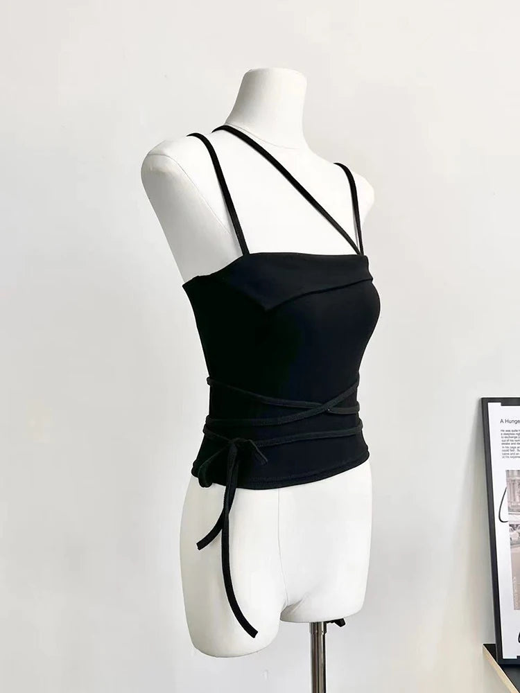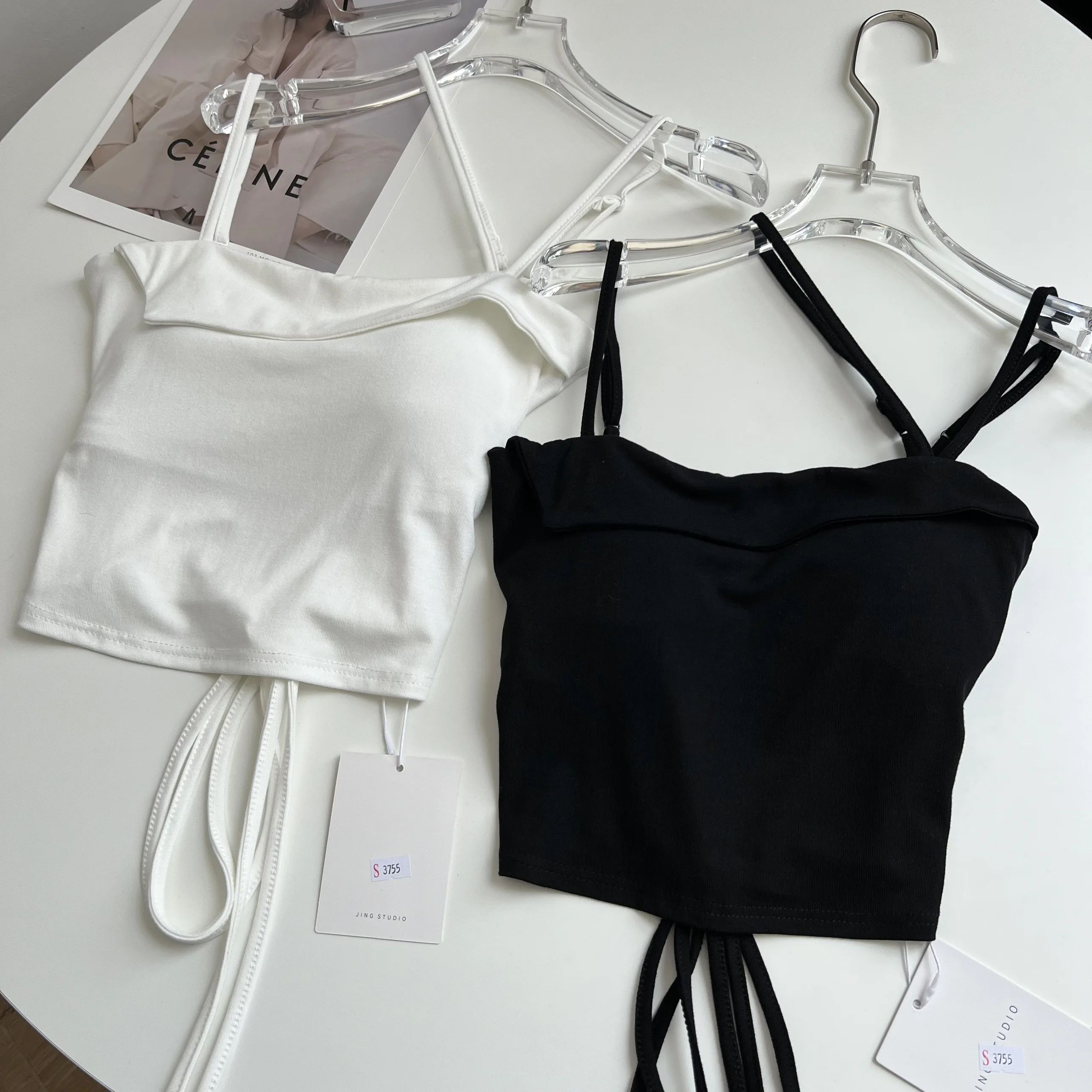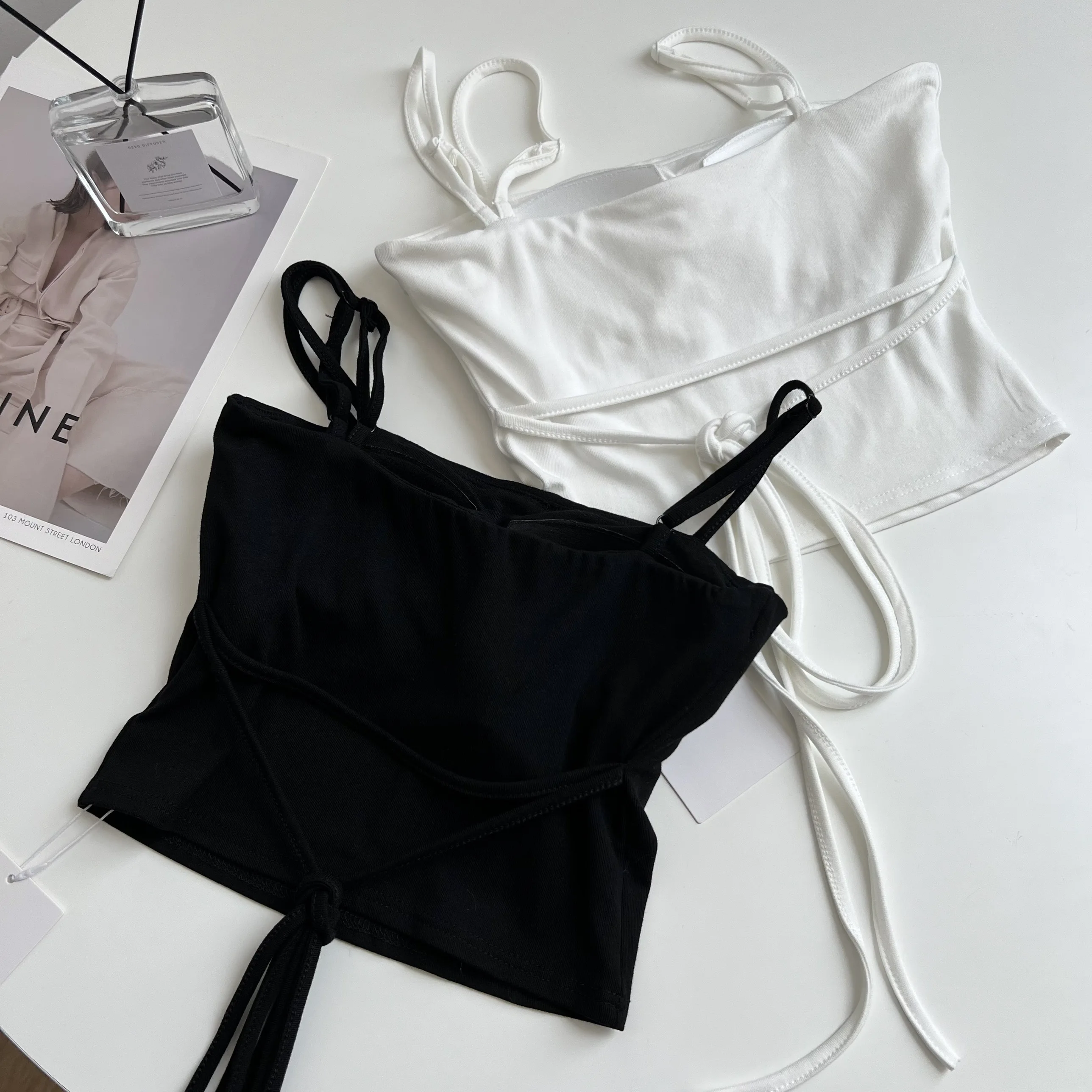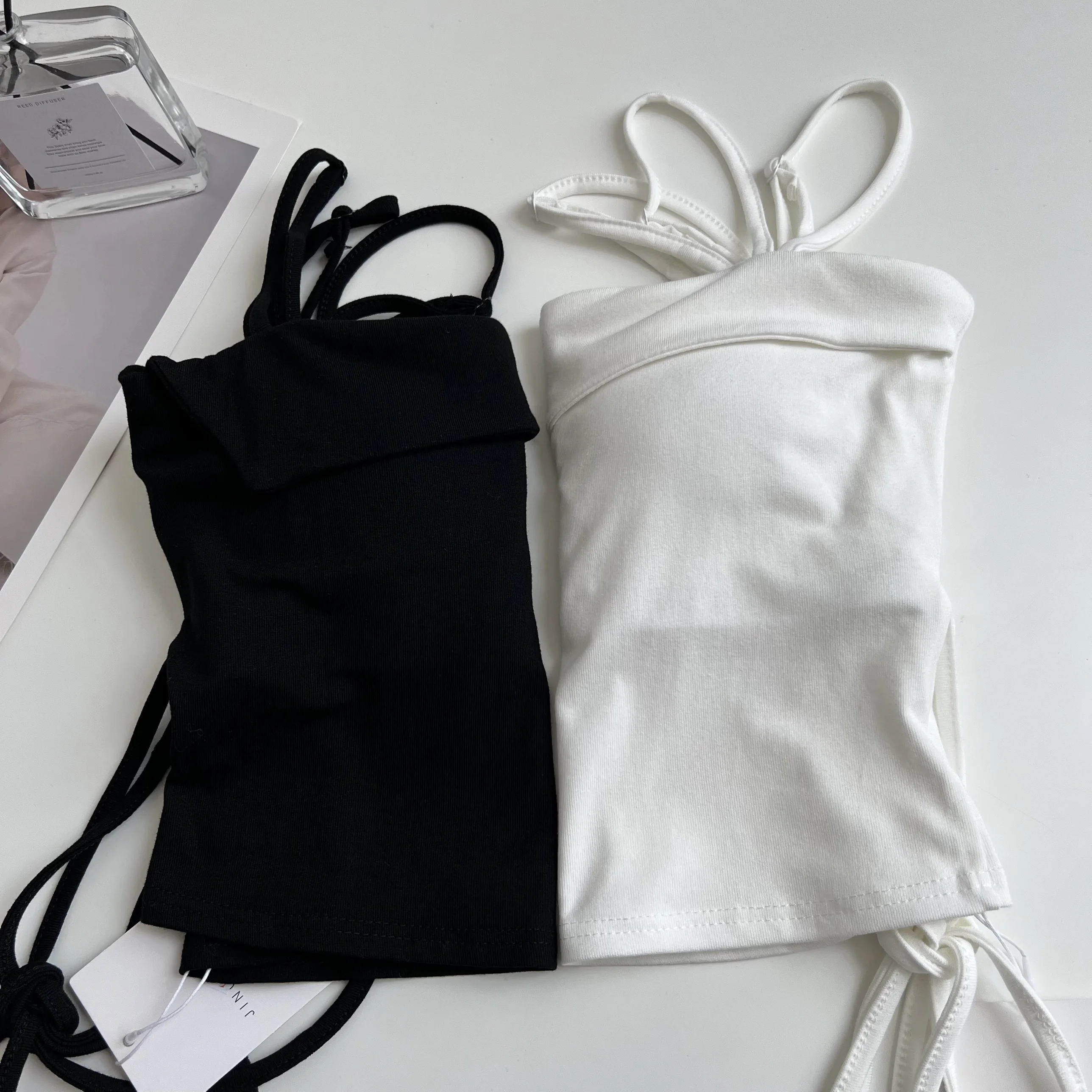 Summer Women Gyaru Camisole Solid Color Crop Top Coquette 2000s Aesthetic Tide Halter Top Hot Sexy Korean Fashion Tide Gothic