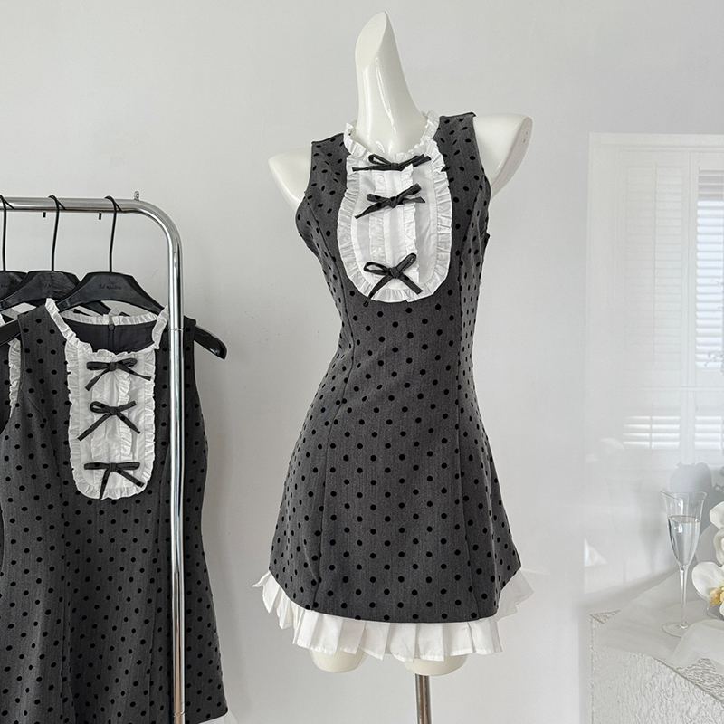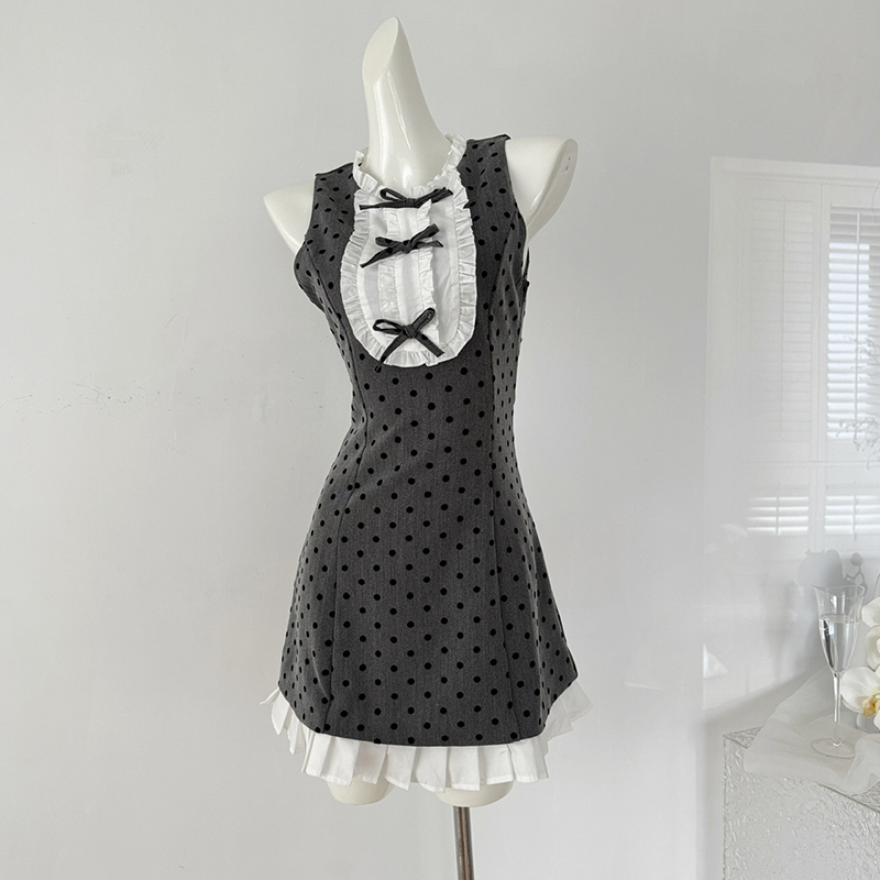 BXOXO - summer inspo Sweet and Spicy Polka Dot Sleeveless Dress for Women Summer New Chic Spicy Girl Waist Slimming A-line Short Dress