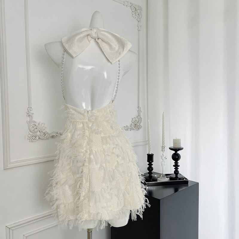 BXOXO - summer inspo Temperament Backless Bow Dress Women Fashion Slim Sleeveless Solid Color Halter Neck Party Mini Dress Chic A-line Skirt