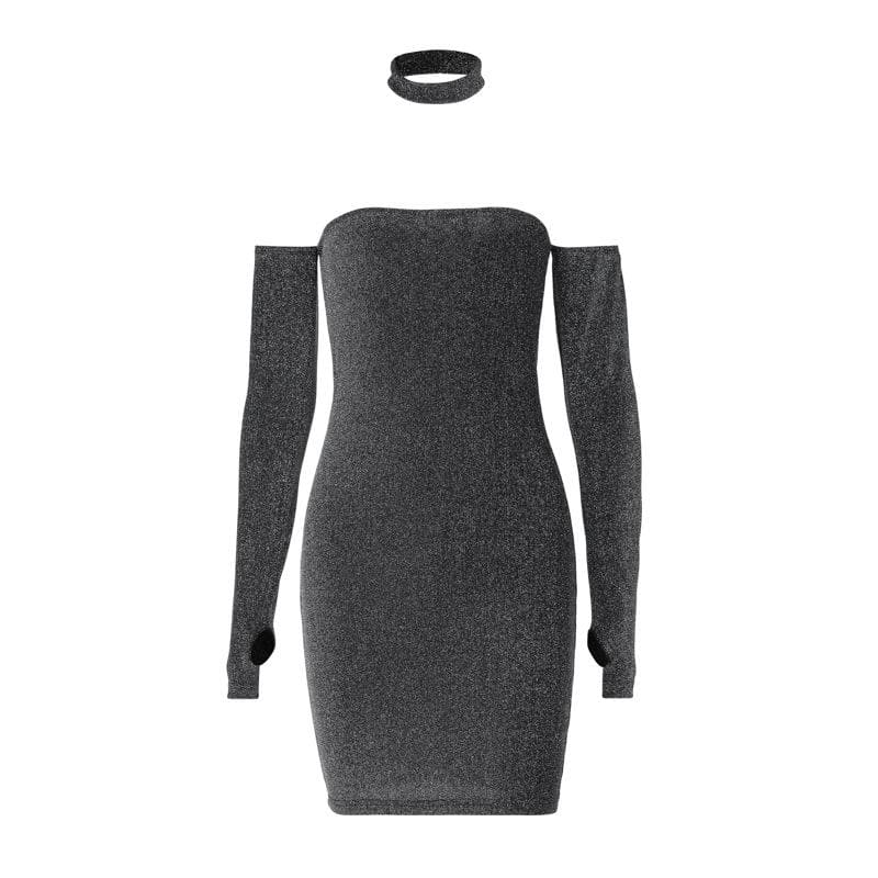 Textured Gloves Off Shoulder Long Sleeve Backless Mini Dress