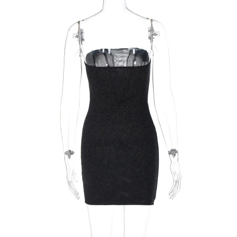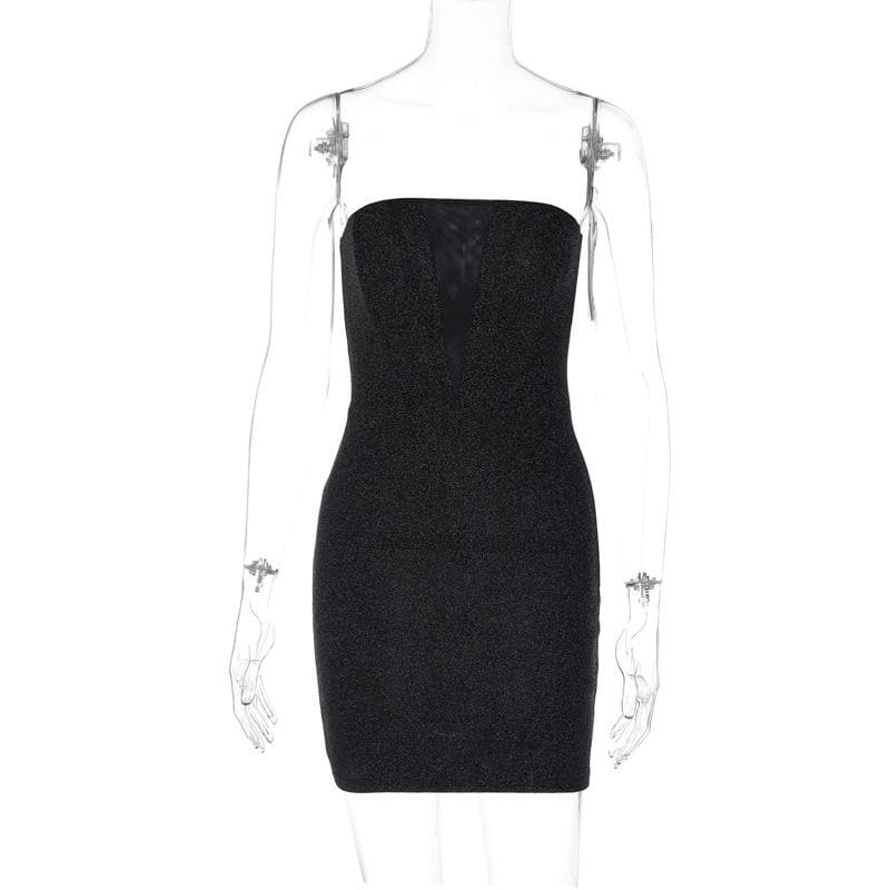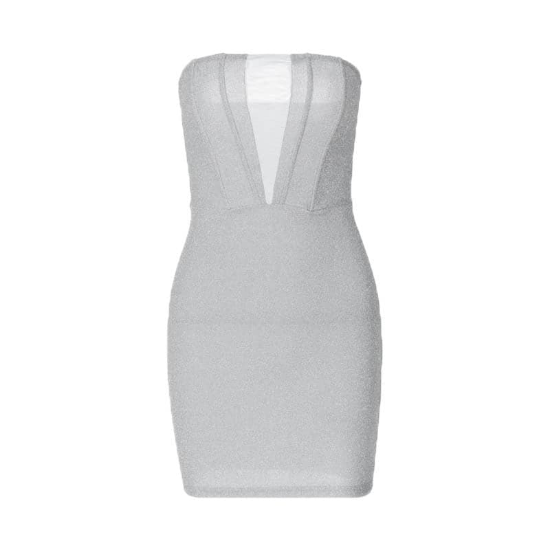 Textured Mesh Patchwork Corset Backless Tube Mini Dress