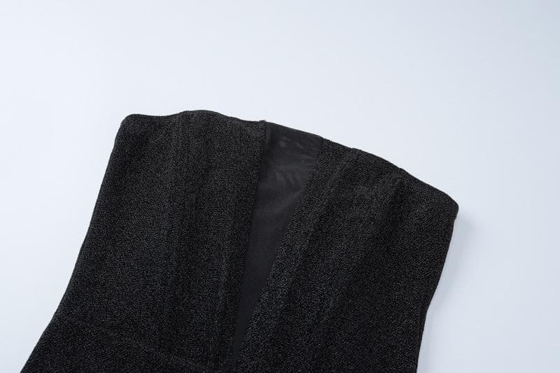 • Textured Mesh Patchwork Corset Backless Tube Mini Dress