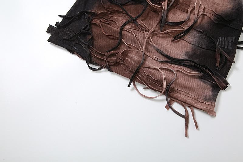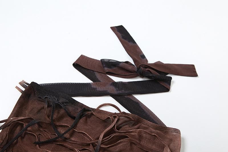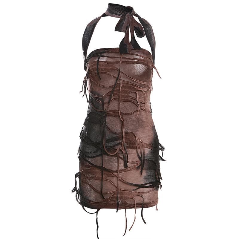 • Tie Dye Textured Halter Backless Contrast Mini Dress