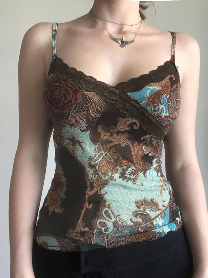 BXOXO - Vintage Lace Gradient Print Cami Top