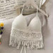 Women Knit Halter Sexy Crop Top Lace Up Hollow Out Tassel Tank Top With Bra Spaghetti Strap Camis Beach Top Spring Summer