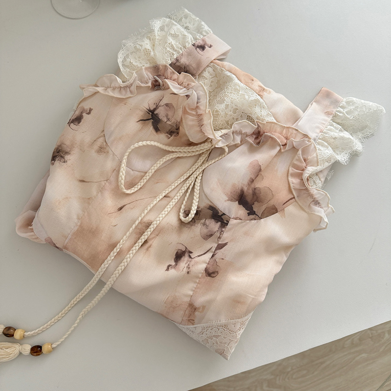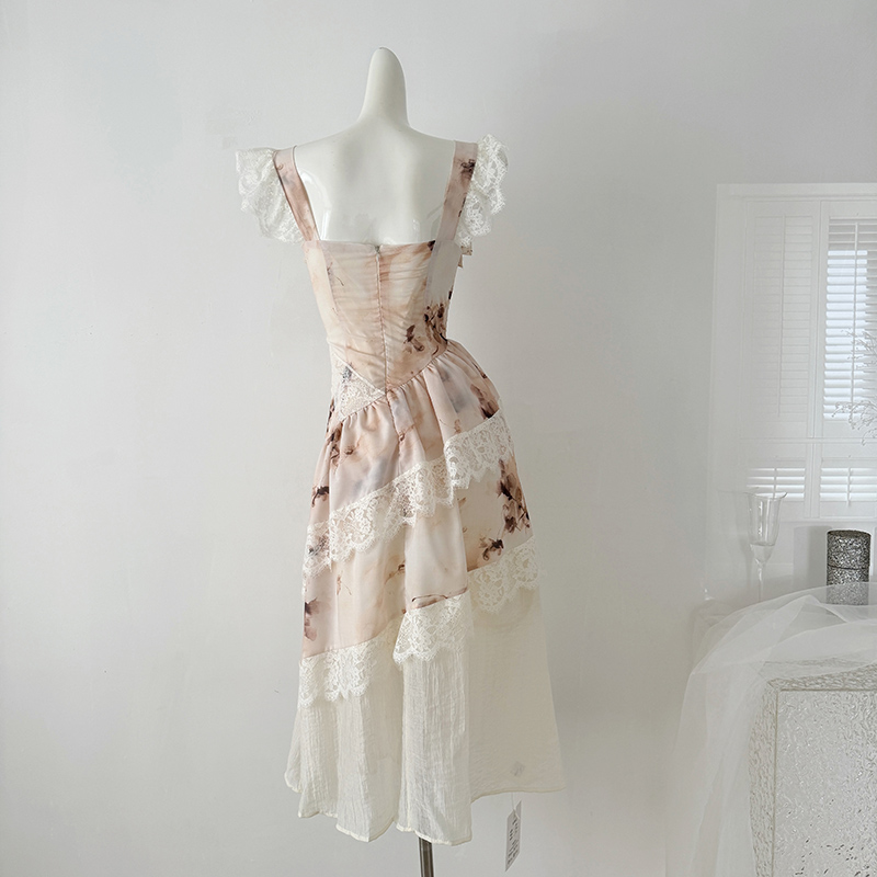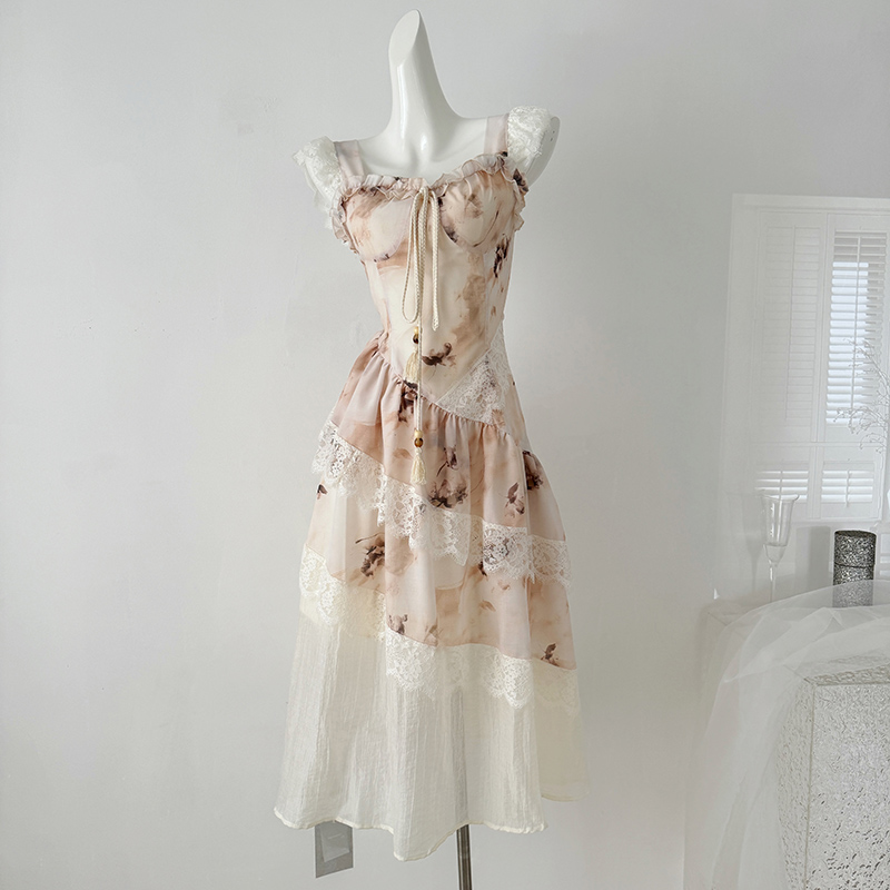 BXOXO - summer inspo Women Sleeveless Dress Gentle Sweet Korean Style Fashionable Summer All-match Flower Print Ruffles Fairy Sundress