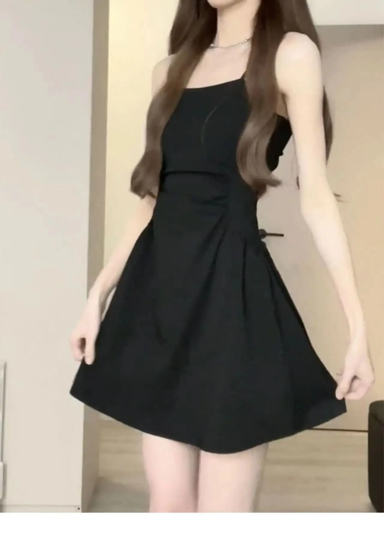 Women Summer Dress French Style Sleeveless Black Camisole Dress for Women Hepburn Style Little Black Mini Dress Slim