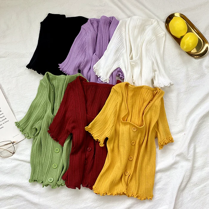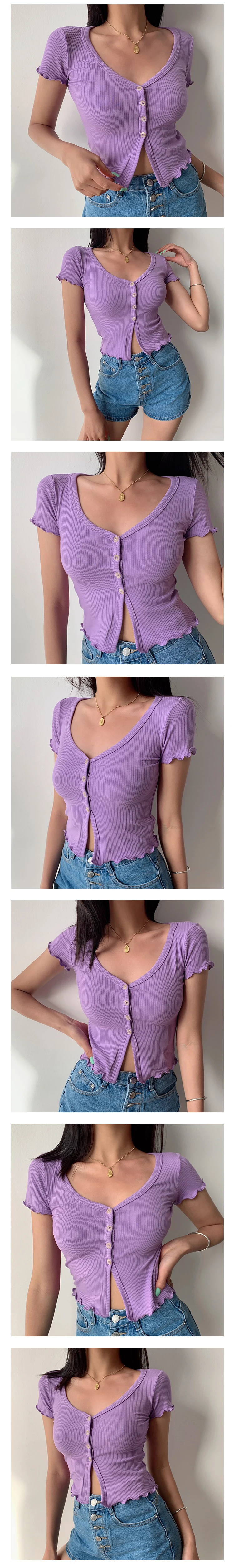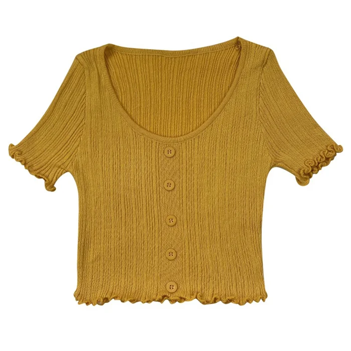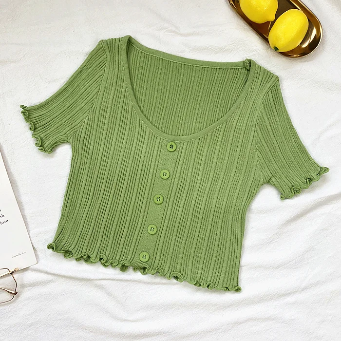 Women V-neck Knitted Summer Thin T-Shirts Camisetas Feminino Sexy Short Sleeve T-shirts Button Up Tops For Women